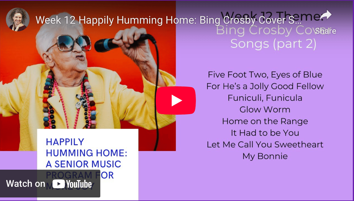 This is week 12 of the year and we will be celebrating Bing Crosby Cover Songs (Part 2), by delving into the songs and applying concepts to create more joy and connection during caregiving routines with music.