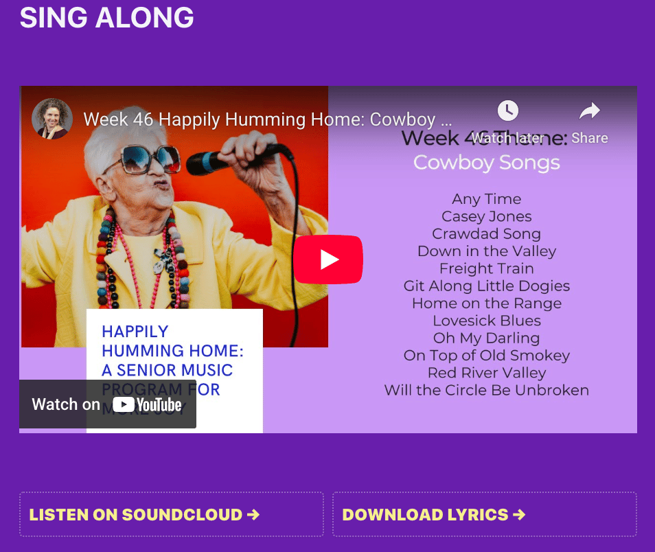 This is week 46 of the year and we will be celebrating Cowboy Songs, by delving into the songs and applying concepts to create more joy and connection during caregiving routines with music.